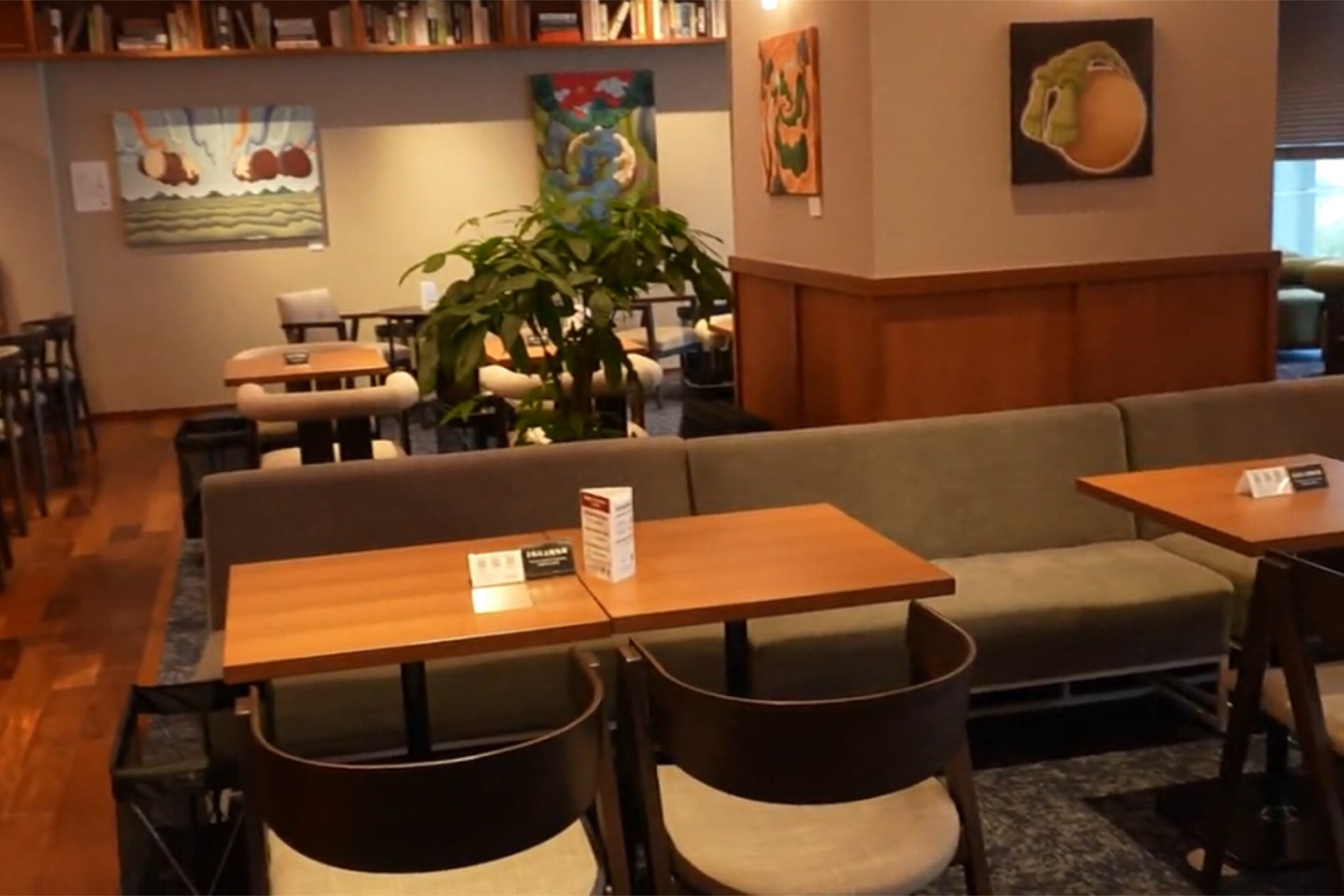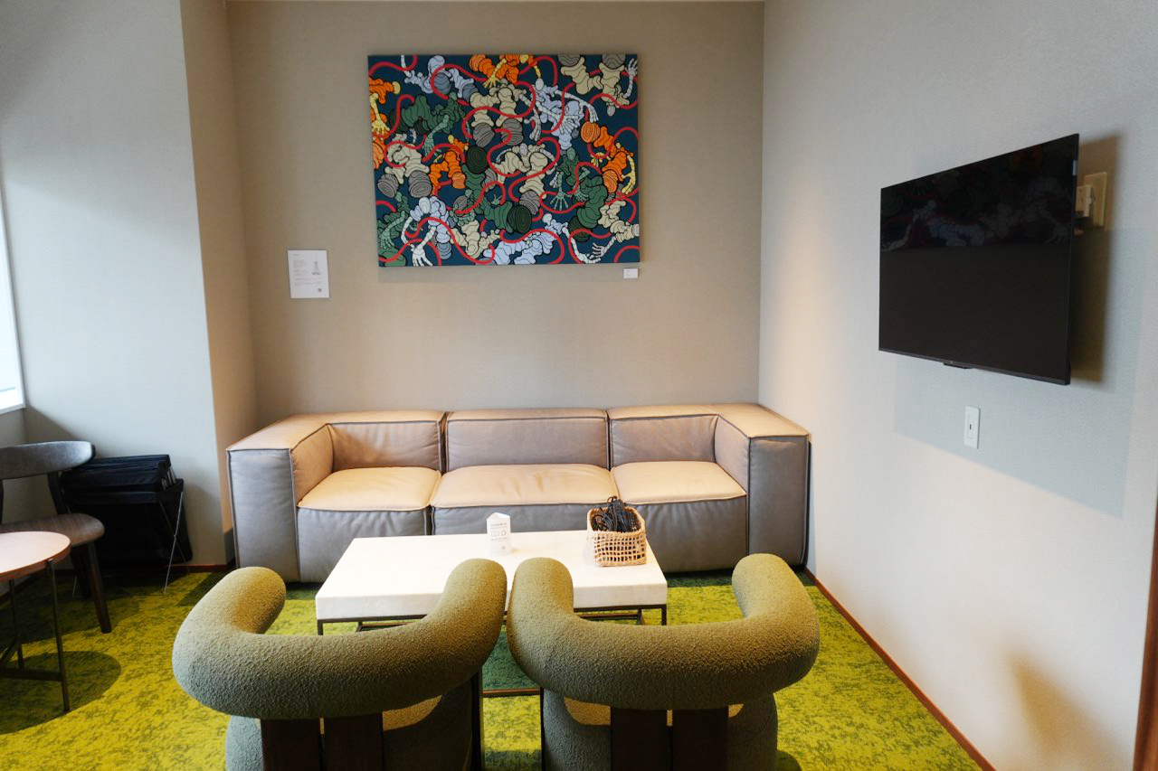 ラウンジの周辺には、独自の切り口で選ばれた本や雑貨が並びます。また、インテリアの一部としてアートも飾られています(定期的に入れ替えるそうなので、ぜひチェックしてみてください) ポップアップイベントなどもずいじ開催されており、作業の合間に眺めるだけでもインスピレーションが刺激されそうです。