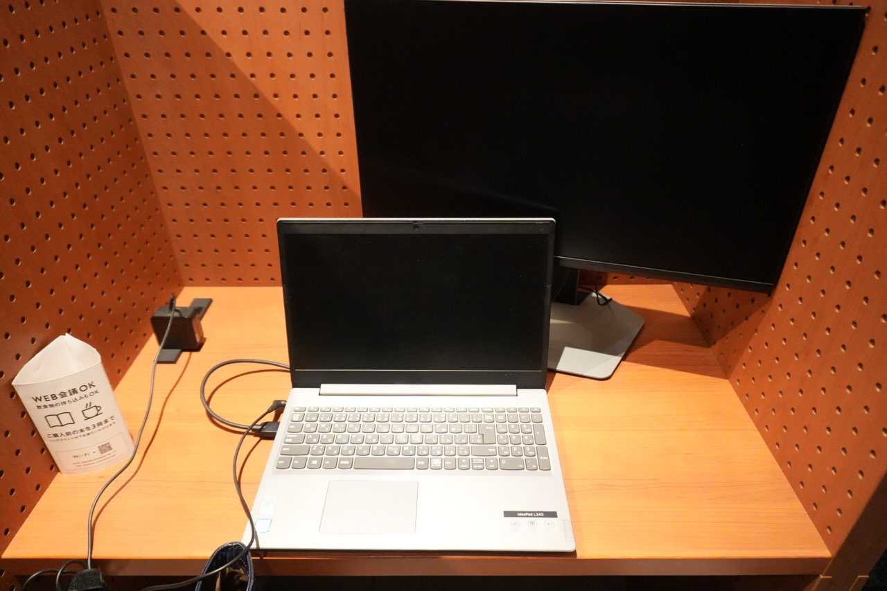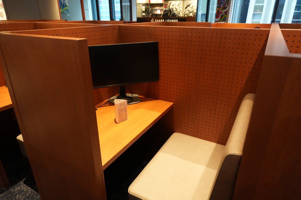 シェアラウンジの一部席には、作業効率が格段に上がるモニターが設置されておりW(ダブル)モニターで作業ができます。