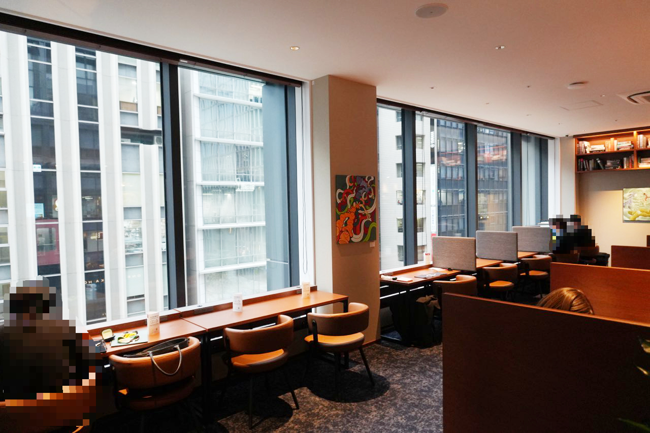 こちらのスペースは大きく「カフェラウンジ(カフェに近い席のスタイル)」と「シェアラウンジ(コワーキングに近い席)」の2つのエリアに分かれています。