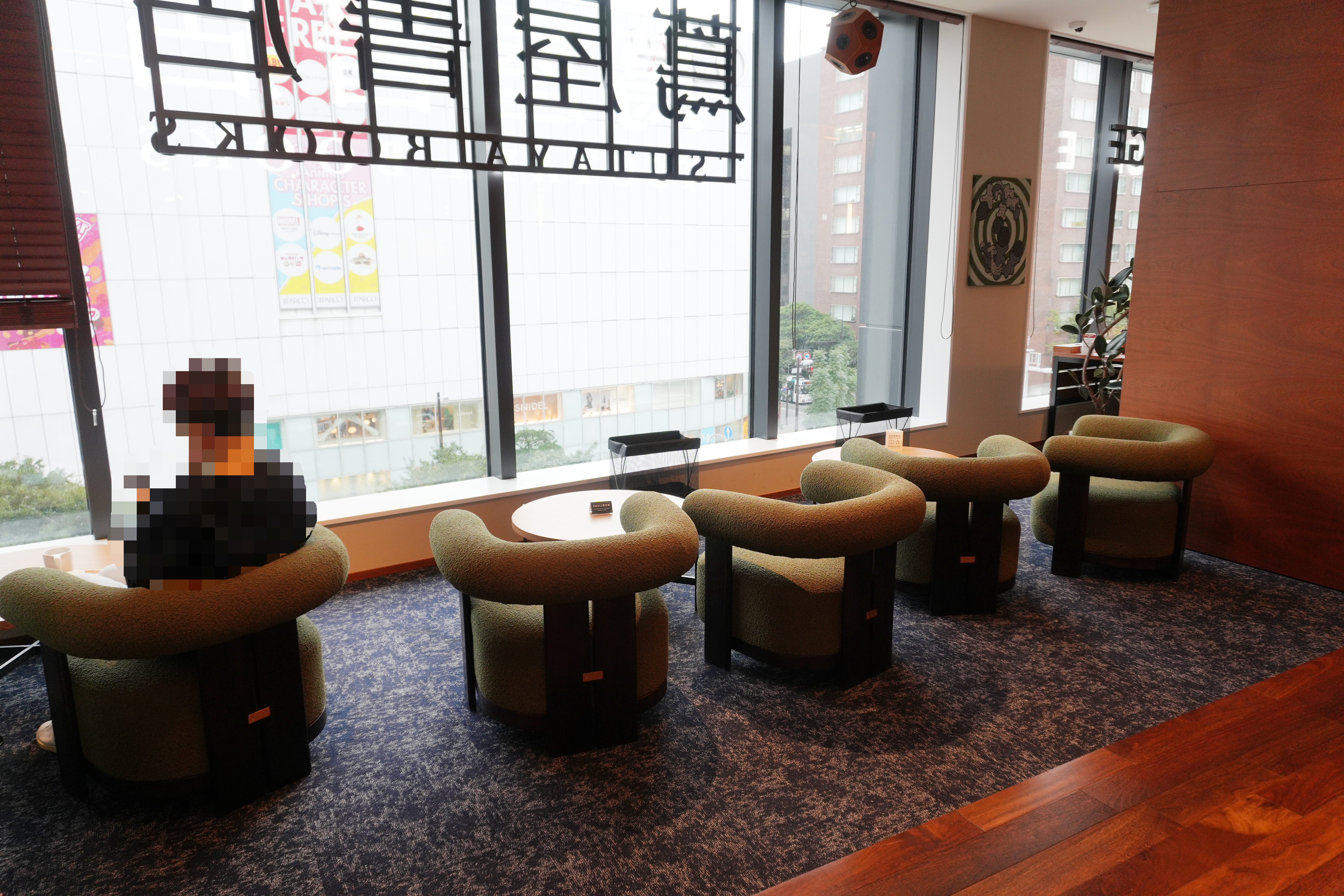 カフェラウンジやシェアラウンジでもお話やWeb会議です。ただし、ラウンジ内はオシャレな音楽も流れていたり、時間帯によりますが周りが静かな場合もあります。よって、プレゼンやお客様との大事なWeb会議や通話においては、有料の「会議室」の利用が最も安心です。