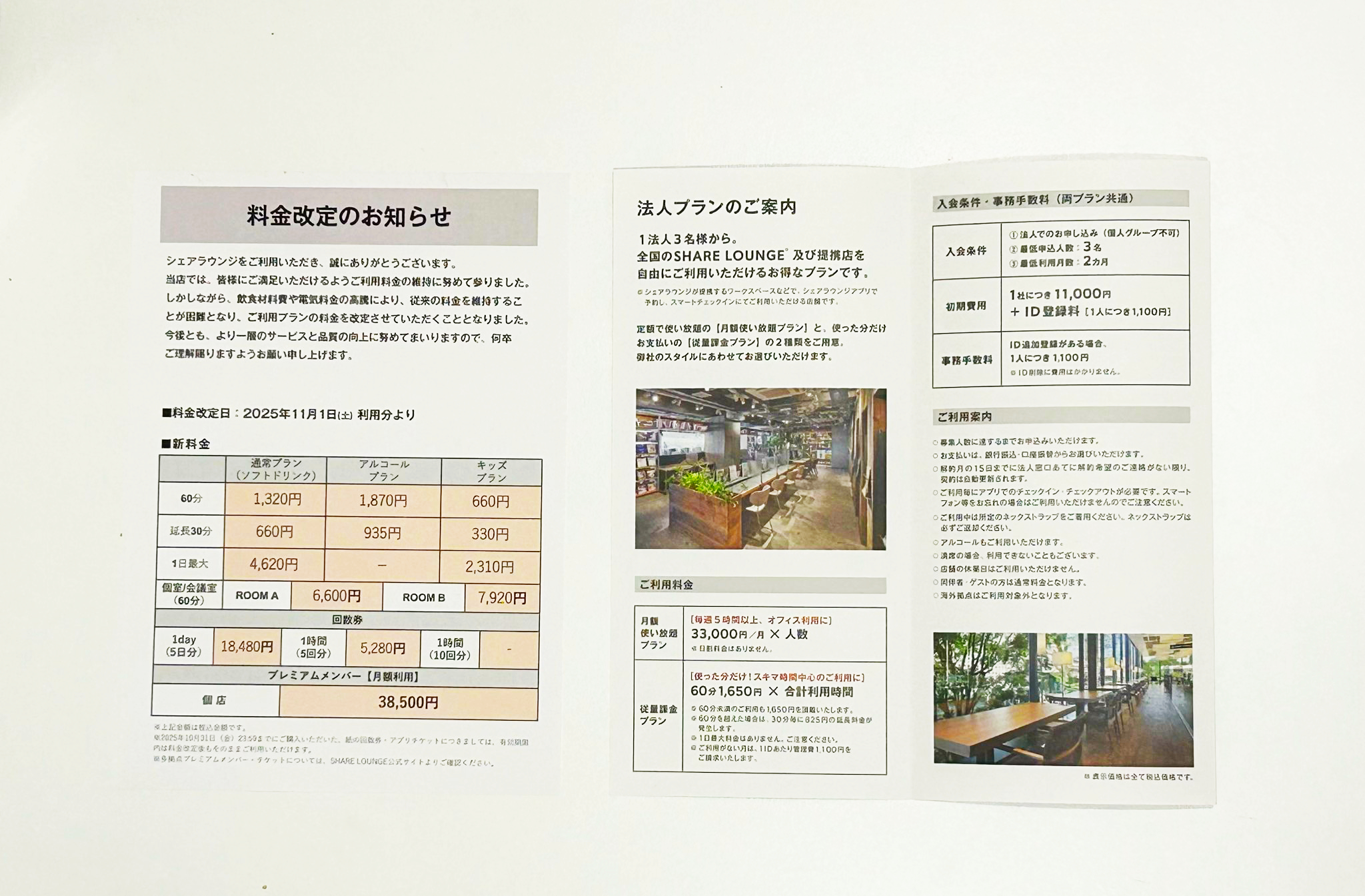 この料金で、先ほど紹介した「カフェラウンジ」と「シェアラウンジ」の両方のエリアを自由に行き来できます。 「集中したい時はシェアラウンジ」「気分転換にカフェラウンジ」といった使い分けができるのも大きな魅力です。