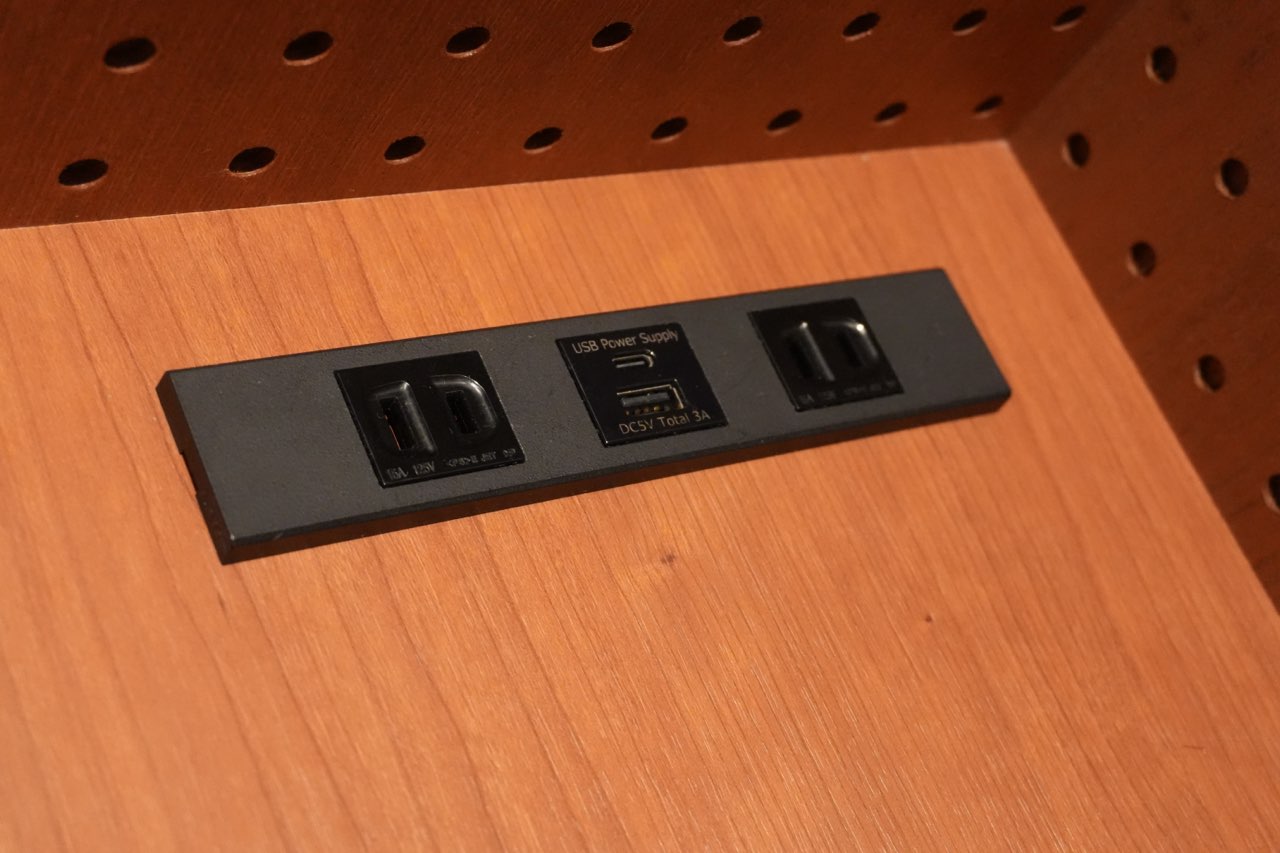 シェアラウンジでは全席に電源(コンセント)とUSBポートが設置されていました。 カフェラウンジでは、2025年11月以降、電源があるスペースを増やす計画です。 PC作業中にバッテリー残量を心配する必要がないのは、非常にありがたいポイントです。