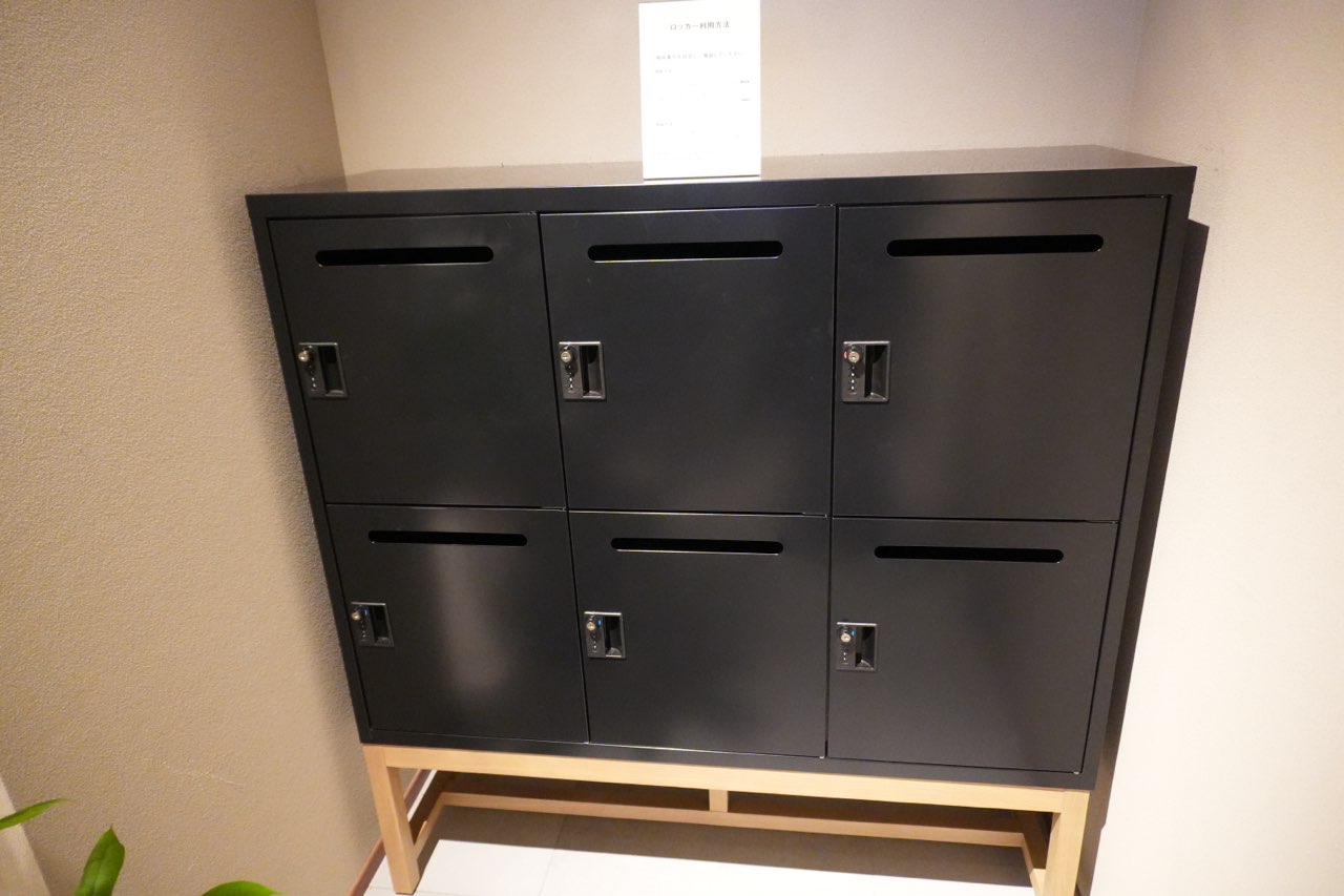 ラウンジ内には、鍵付きの専用ロッカーが設置されています。キャリーバッグのような大きな荷物は難しいですが、一般的なビジネスバッグが収まるようなロッカーがあり、セキュリティ面で心配な方にも安心の設備です。