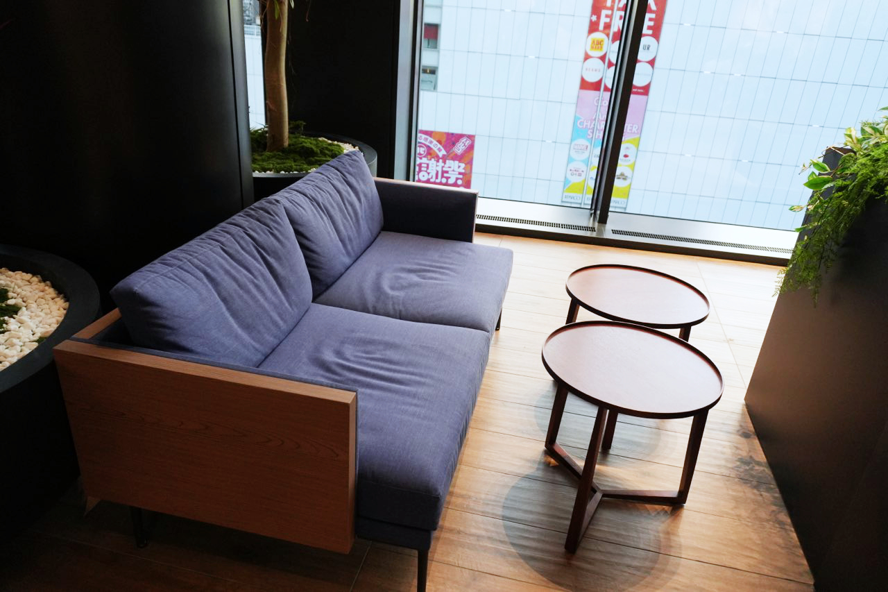 一番目を引くのは、大きなガラス窓から天神の街並みが見下ろせる、見晴らしのよい景色。 この景色を眺めるだけでも、リフレッシュや気分転換になります。