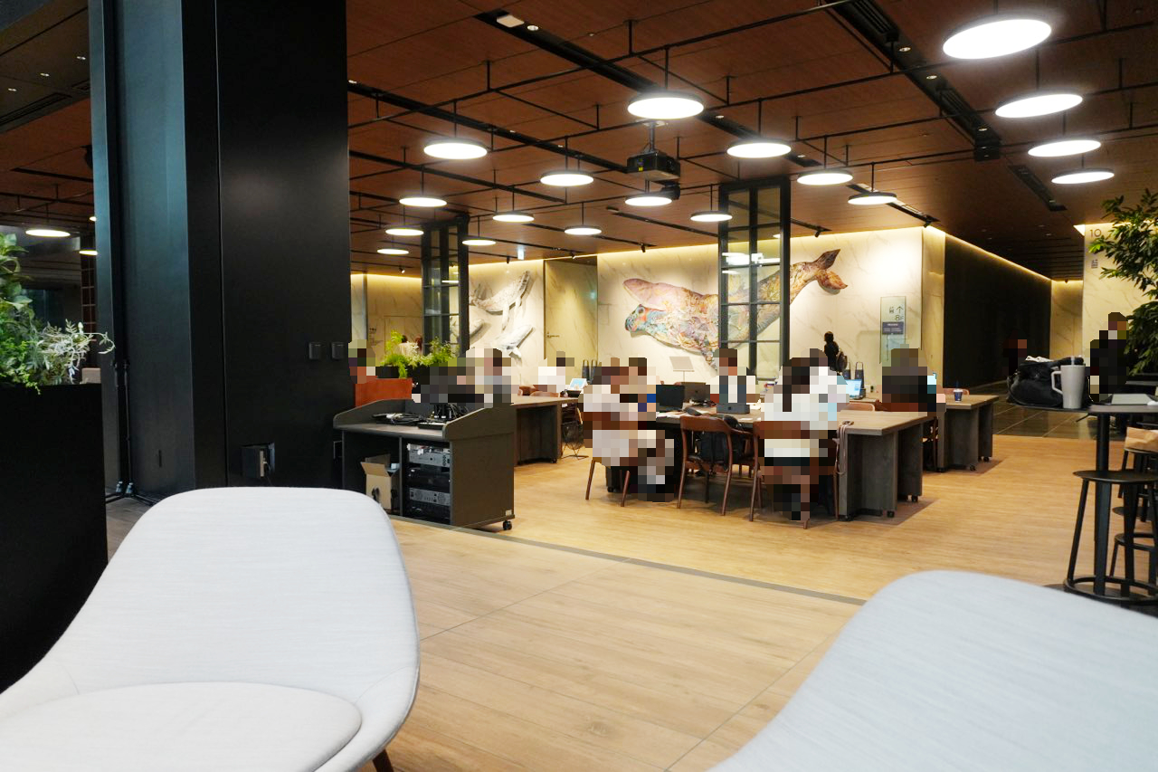 スカイロビーはあくまで「一般開放されたオープンスペース」です。 蔦屋書店のシェアラウンジのように、半個室のような仕切りはありません。
