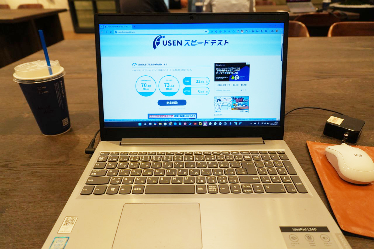 次に、PC作業に必須のインフラ(Wi-Fiと電源)をチェックしました。